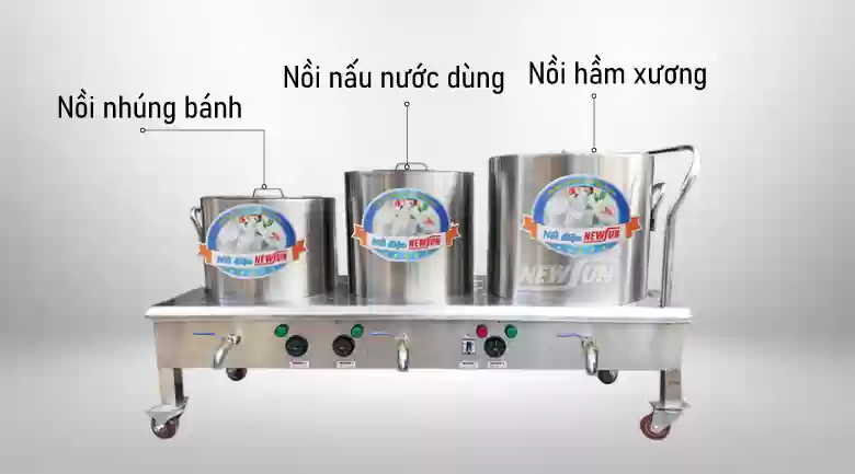 Không giống như những thiết bị khác, nồi nấu phở bằng điện có nhiều thành phần nồi nấu khác nhau. Mỗi nồi sẽ có công dụng khác nhau hỗ trợ cho việc nấu phở.