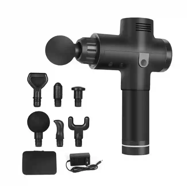 Mit der Massage Gun werden sechs Massageköpfe und ein praktischer Travel-Case mitgeliefert. Mit verschiedenen Massageköpfen können Sie Gewebe auf vielfältige Weise behandeln. Einer der großen runden Köpfe eignet sich besonders gut zum Bearbeiten von Oberflächen und zum Lösen von Verklebungen. Der kegelförmige Aufsatz ist ideal zur Behandlung hartnäckiger Triggerpunkte.