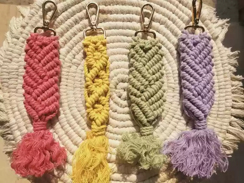 Discover Knottme's eco-friendly, handcrafted macrame keychain, perfect for adding charm to your keys. This stylish accessory combines practicality with artistic elegance. Carefully made by artisans, it offers durability and unique appeal. Ideal for gifting, this keychain enhances everyday utility with a touch of natural beauty and handmade craftsmanship.