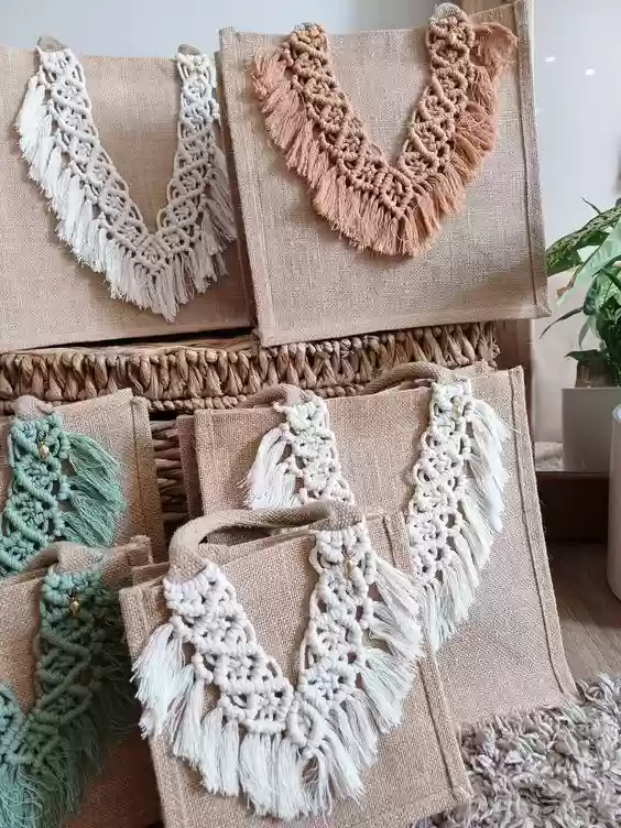 Uncover Knottme's exquisite macrame on jute bags and pouches, tailored for Indian fashion enthusiasts. These eco-friendly accessories blend artisanal charm with practicality, perfect for everyday use. Handcrafted with care, they add a bohemian touch to your style while supporting sustainable fashion choices. Ideal for those seeking unique, handmade accents in their wardrobe.