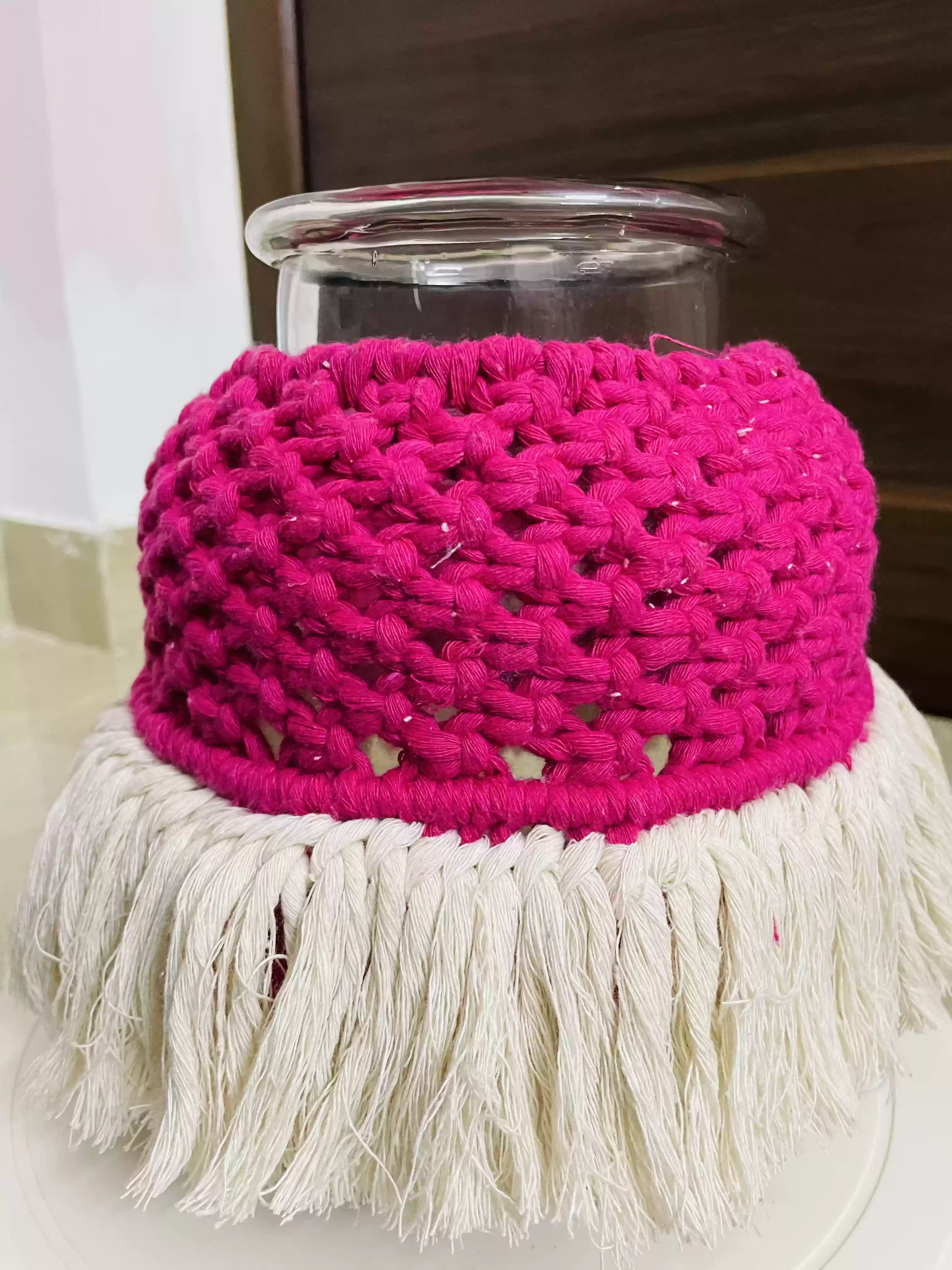 Knottme presents a charming macrame rasgulla jar, crafted for Indian homes and gifting occasions. This handcrafted piece merges aesthetic appeal with practicality, perfect for storing sweets or featuring in festive hampers. Its artisanal charm and eco-friendly design make it a delightful addition to any kitchen or gift collection.