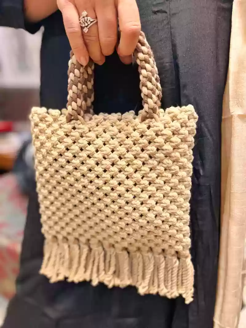 Discover the charm of our handmade macrame thread bag—a versatile, aesthetically pleasing accessory perfect for personal or corporate gifting. Embrace its multi-purpose design, a testament to intricate craftsmanship.