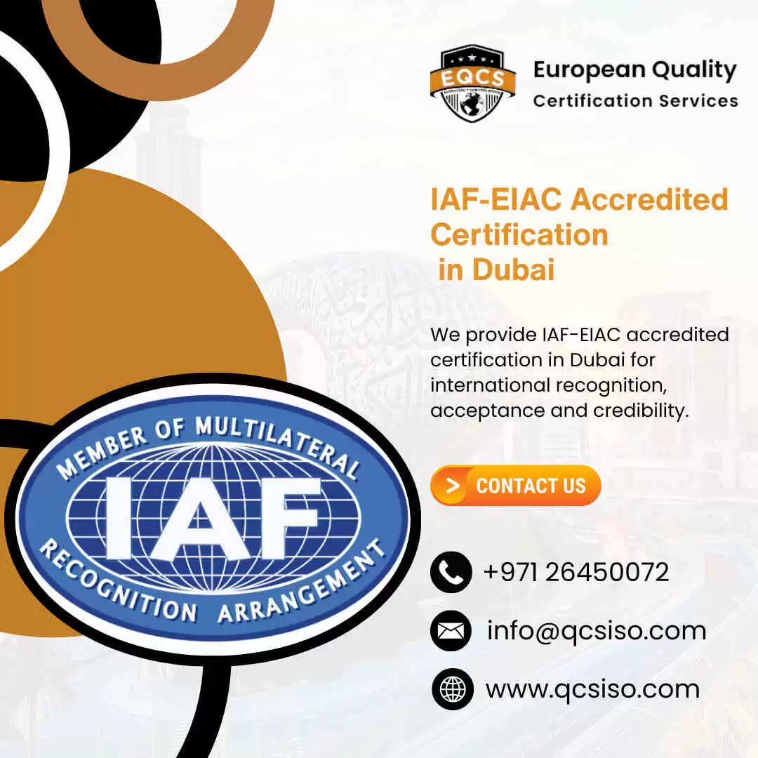 European Quality Certification Services provides IAF-EIAC accredited certification in Dubai based on internationally recognized standards. We apply structured frameworks and objective evaluation methods to all management systems. Our process focuses on detailed documentation, system alignment and accurate assessment outcomes. We maintain transparent procedures, defined scopes and professional review practices throughout the certification activities. Our focus remains on clarity, standard conformity and measurable system performance. We provide consistent methodologies across a variety of industries, while our certification reflects global acceptance and regulatory alignment, along with disciplined organizational systems. Contact European Quality Certification Services today to discuss your certification plans and system requirements.