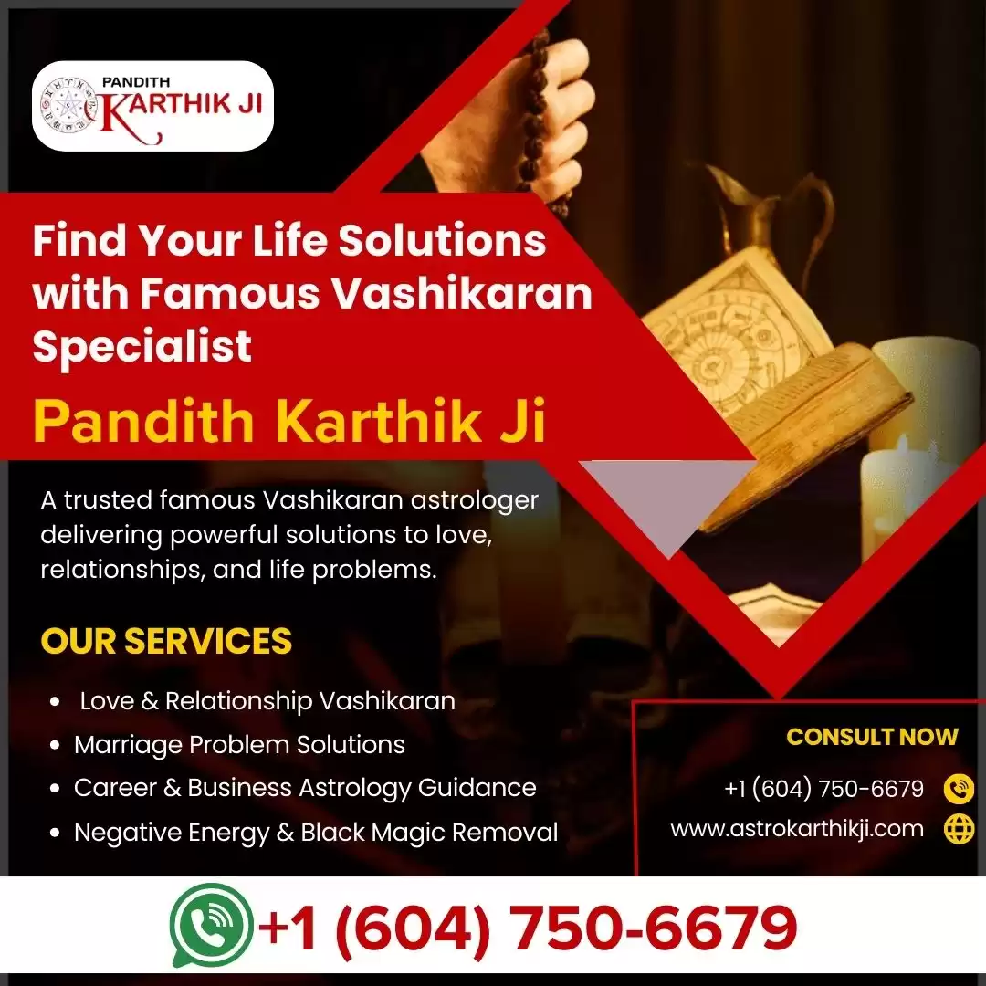 Pandith Karthik Ji is a famous Vashikaran specialist astrologer in Vancouver, known for a deep knowledge of astrology and spiritual sciences. We provide thoughtful guidance to help people overcome challenges related to love, relationships, marriage, career, and personal life with our years of experience. Our approach is respectful, ethical, and focused on positive energy and clarity. Pandith Karthik Ji is known for providing accurate knowledge, compassionate understanding, and a commitment to helping individuals find balance, confidence, and direction through reliable astrological practices.