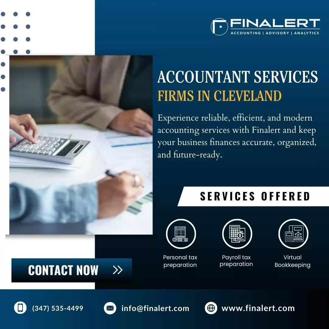 Finalert is a leading accounting services firm in Cleveland for providing businesses with clear, accurate, and stress-free financial management. Our skilled accountants manage bookkeeping, reconciliations, payroll support, accounts payable and receivable, and tax-ready financial statements with accuracy. Our scrutiny of financial data minimizes errors, improves reporting clarity, and optimizes cash flow. We help businesses make smarter decisions, boost profitability, and achieve long-term financial stability through secure systems and deep industry expertise. Contact us now to streamline your finances, improve compliance, and grow your business with confidence.