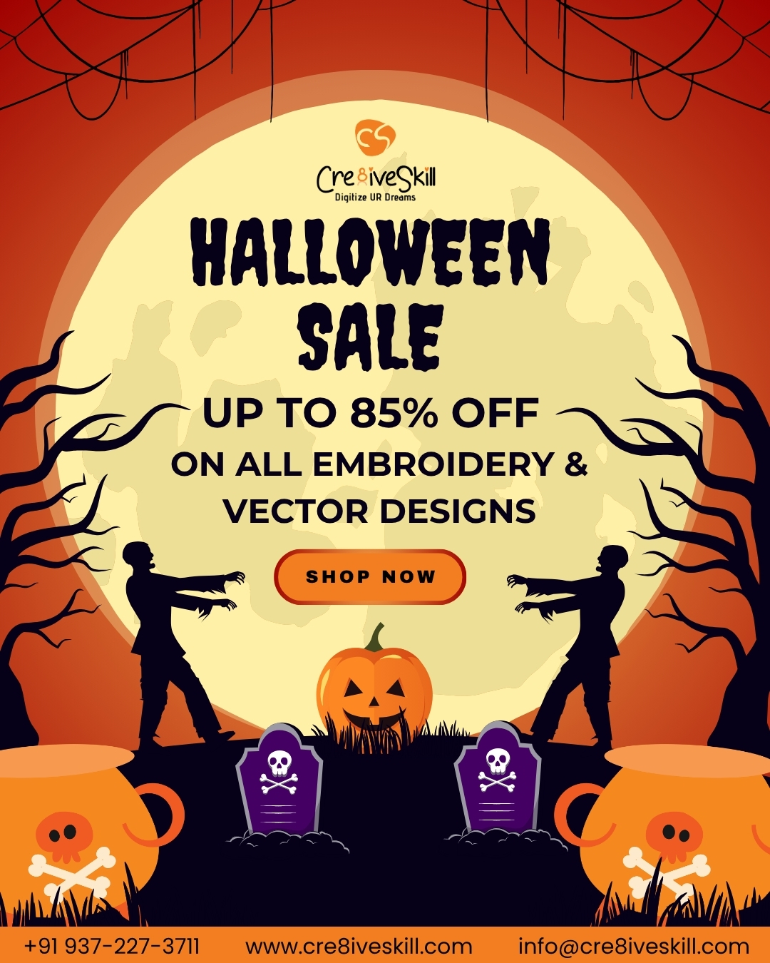 October's here, and you can feel that Halloween excitement building! Spark joy and spook with Cre8iveSkill’s new vector and machine embroidery designs. From grinning jack-o’-lanterns to haunted mansions and playful ghosts, each design is made for sharp stitches and bold prints. They turn plain tees and gifts into crowd-pleasing showpieces that charm and thrill.