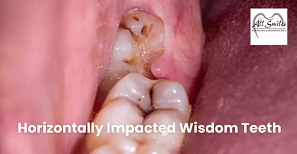 Experiencing pain or swelling in the back of your mouth? A horizontal impacted wisdom tooth can grow sideways and press against nearby teeth, causing discomfort, infection, and gum problems. Get professional evaluation and treatment at All Smiles Dentistry & Orthodontics.