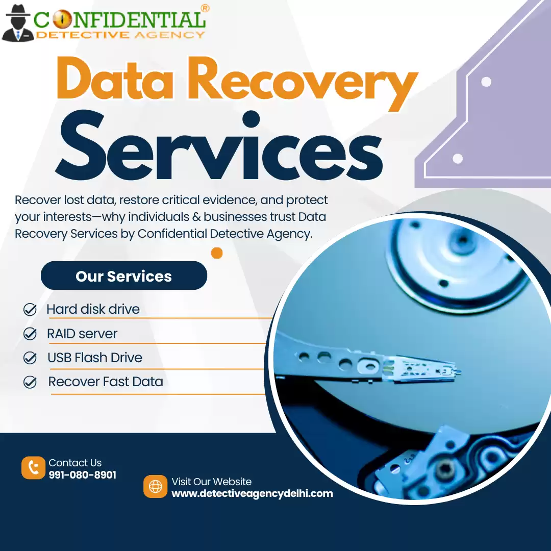 Confidential Detective Agency offers professional and discreet data recovery services in Delhi, helping individuals and corporates retrieve lost data from hard drives, laptops, mobile devices, and storage systems. Every case is handled with strict confidentiality and technical precision.