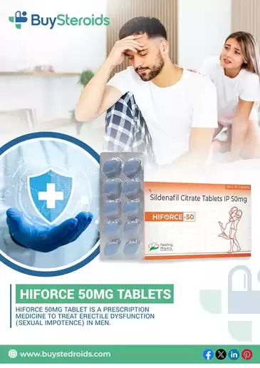 Reignite your passion with Hiforce 50 mg tablets from Buy Steroids. Containing sildenafil citrate, this moderate-dose formula helps improv...