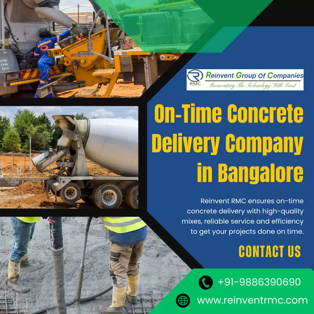 Reinvent RMC is the leading on-time concrete delivery company in Bangalore, famous for its excellence and reliability. Our goal is to ensure that every delivery reaches your site on time in order to maintain smooth construction schedules. We provide high-quality ready-mix concrete that supports the fastest, strongest and most durable construction results. Reinvent RMC keeps your project running smoothly without delays by using advanced mixing technology, efficient transportation and professional service. Our commitment is to assist you in achieving success and we value your time. Get concrete delivered quickly, professionally and stress-free by contacting us today.