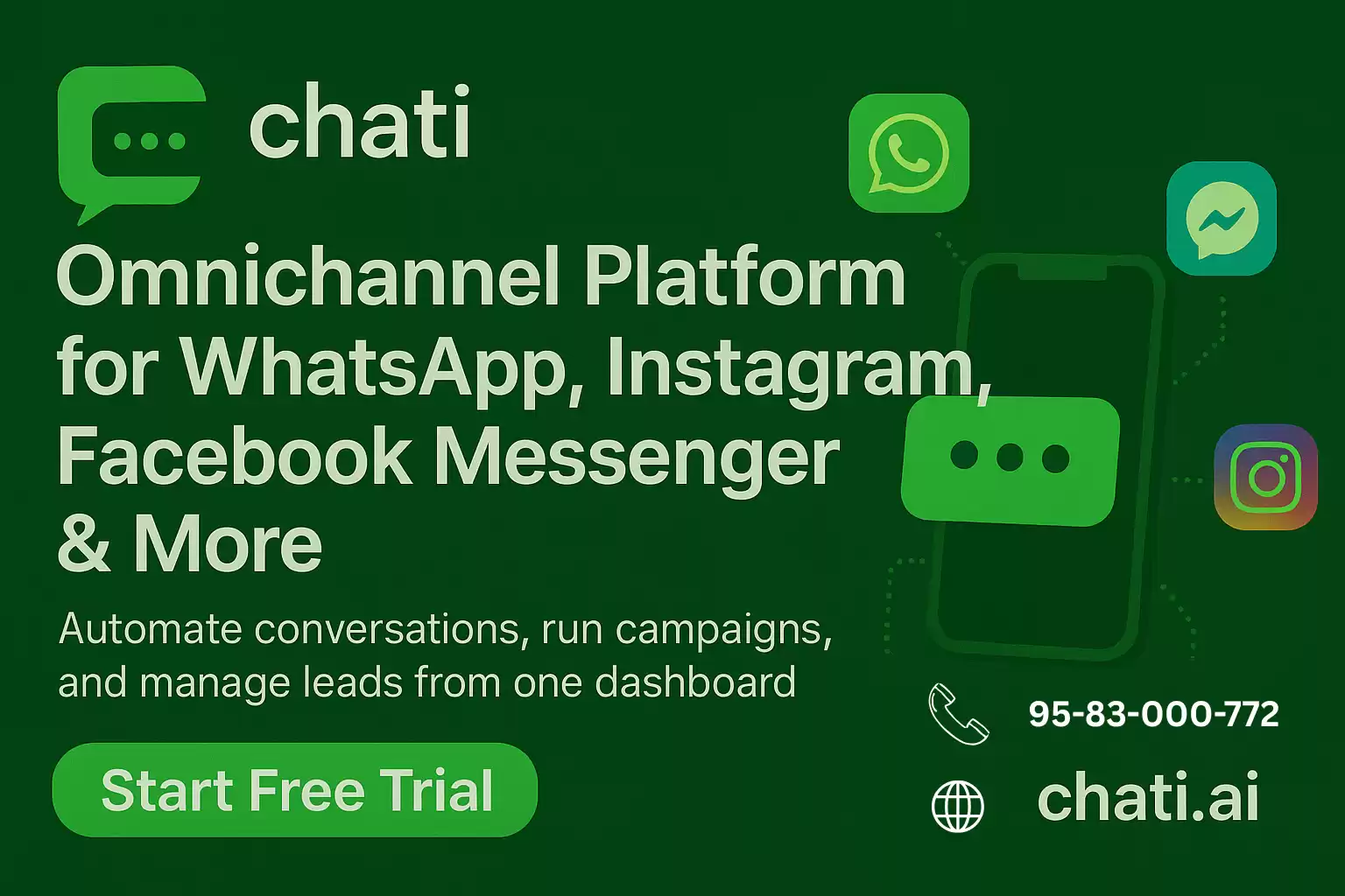 Manage all your customer conversations across WhatsApp, Instagram, SMS, and more from a single, easy-to-use platform. This omnichannel messaging platform helps businesses respond faster, stay organized, and deliver a seamless customer experience. Improve team productivity, reduce missed messages, and build stronger relationships with customers by keeping everything in one place.