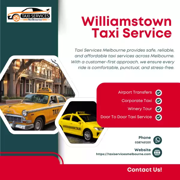 👉 Book your Williamstown taxi today with Taxi Services Melbourne and enjoy hassle-free, on-time transportation. Visit our website now or call us to schedule your ride instantly!