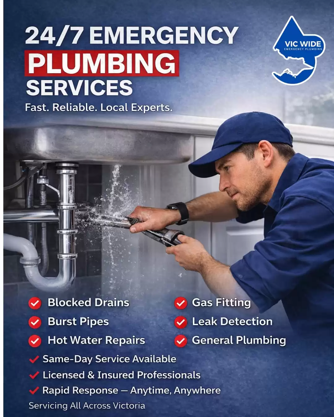 Need a plumber urgently? We’re here anytime, anywhere across Victoria!✔ Blocked Drains✔ Burst Pipes✔ Hot Water Repairs✔ Gas Fittin...