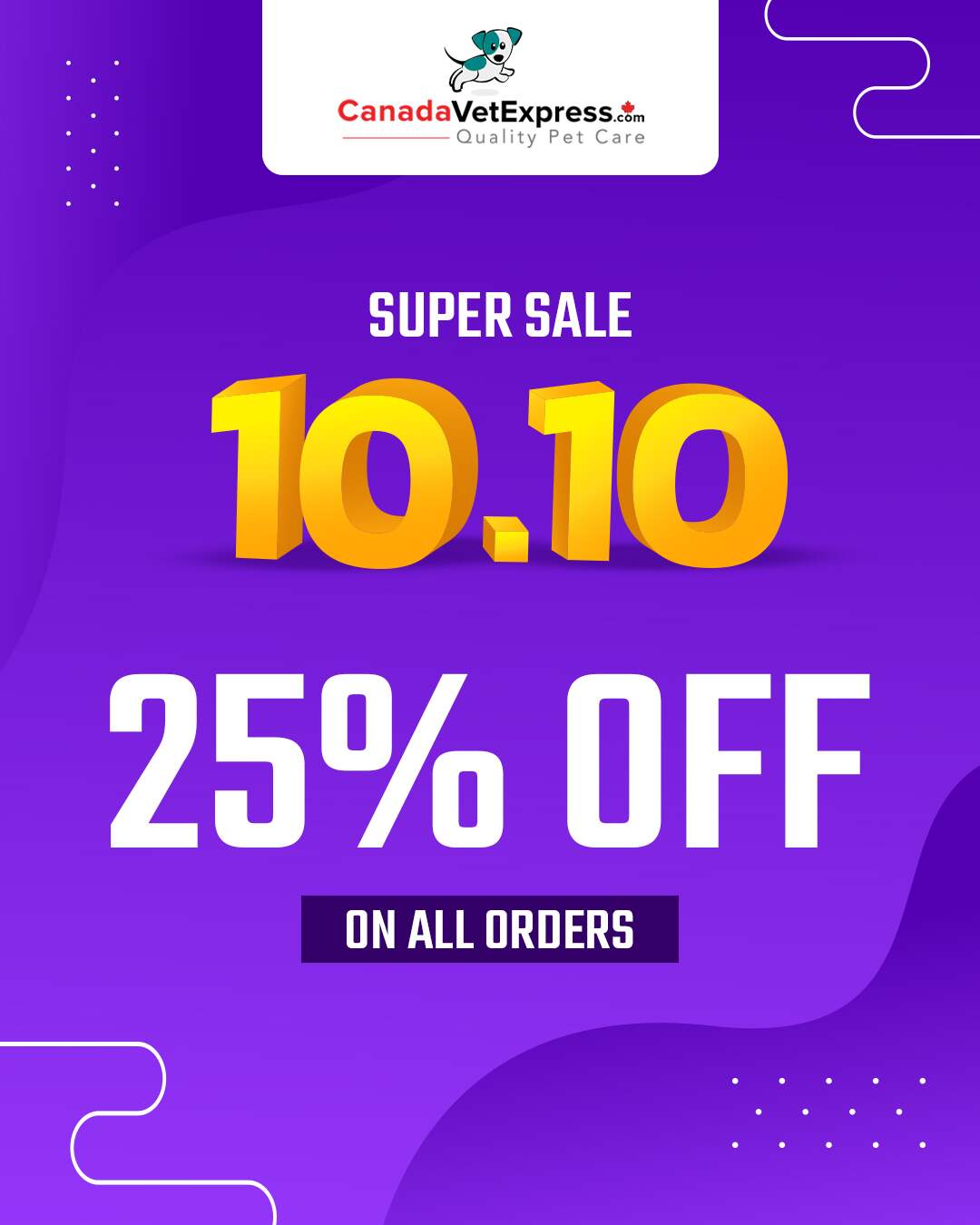 Stock up on all your pet care products and save 25% OFF on every order!