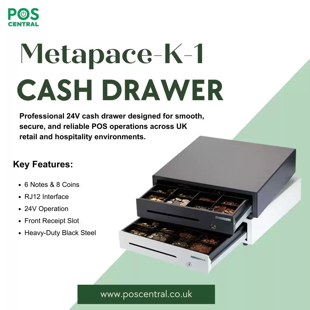 Built for fast-moving UK retail and hospitality environments, the Metapace-K-1 Cash Drawer combines security with everyday efficiency. This ...