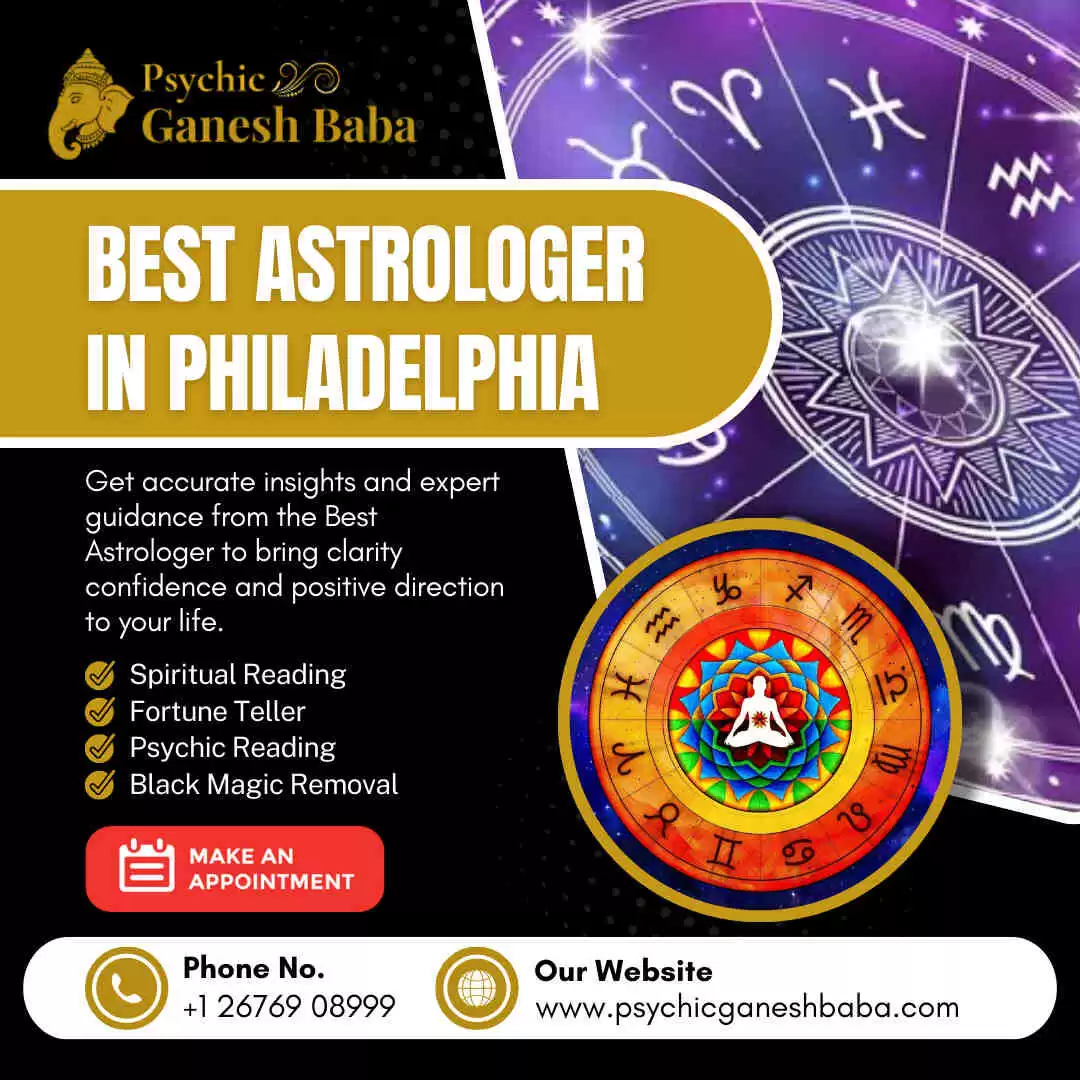 Psychic Ganesh Baba stands out as the Best Astrologer in Philadelphia, offering accurate advice through astrology and spiritual insights. Our proven astrological methods provide personalized solutions to love, marriage, careers, finance, family issues and life challenges. We approach each client in a unique way, focusing on understanding their problems and providing solutions that will bring clarity, peace and positive transformation to their lives. Psychic Ganesh Baba assists clients in overcoming obstacles and making confident choices using traditional astrology and modern understanding. We give honest advice and practical remedies for long-term success. Make an appointment with Psychic Ganesh Baba today and start living a better life.
