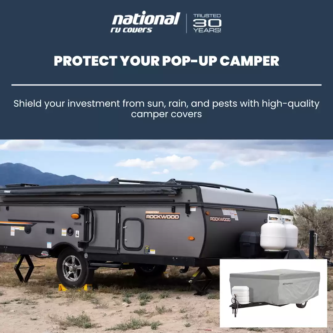 National RV Covers offer reliable protection for pop-up campers, helping guard against environmental damage. Crafted for strength and breathability, these pop-up campers covers minimize mold, mildew, and sun damage. With a snug fit and durable construction, they protect your investment, simplify maintenance, and keep your camper adventure-ready through changing seasons and climates.