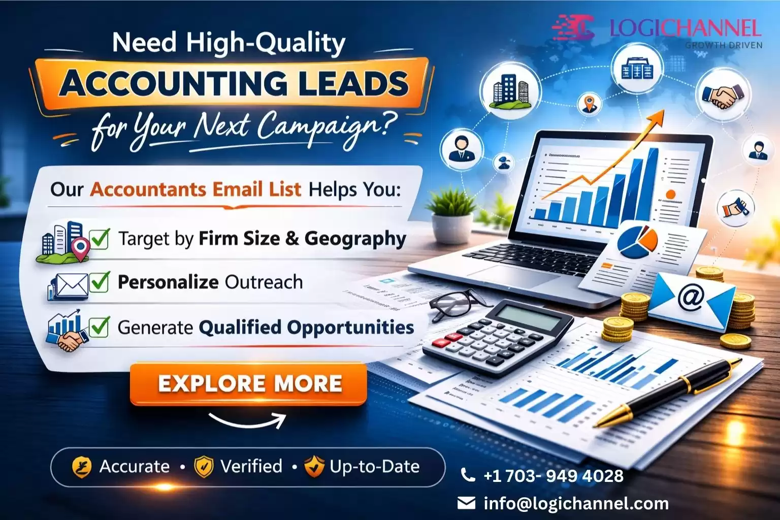 Struggling to reach accountants directly without talking with gatekeepers? LogiChannel covers you, we help you to overcome your challeng by providing verified, meticulously curated Accountants Email List.